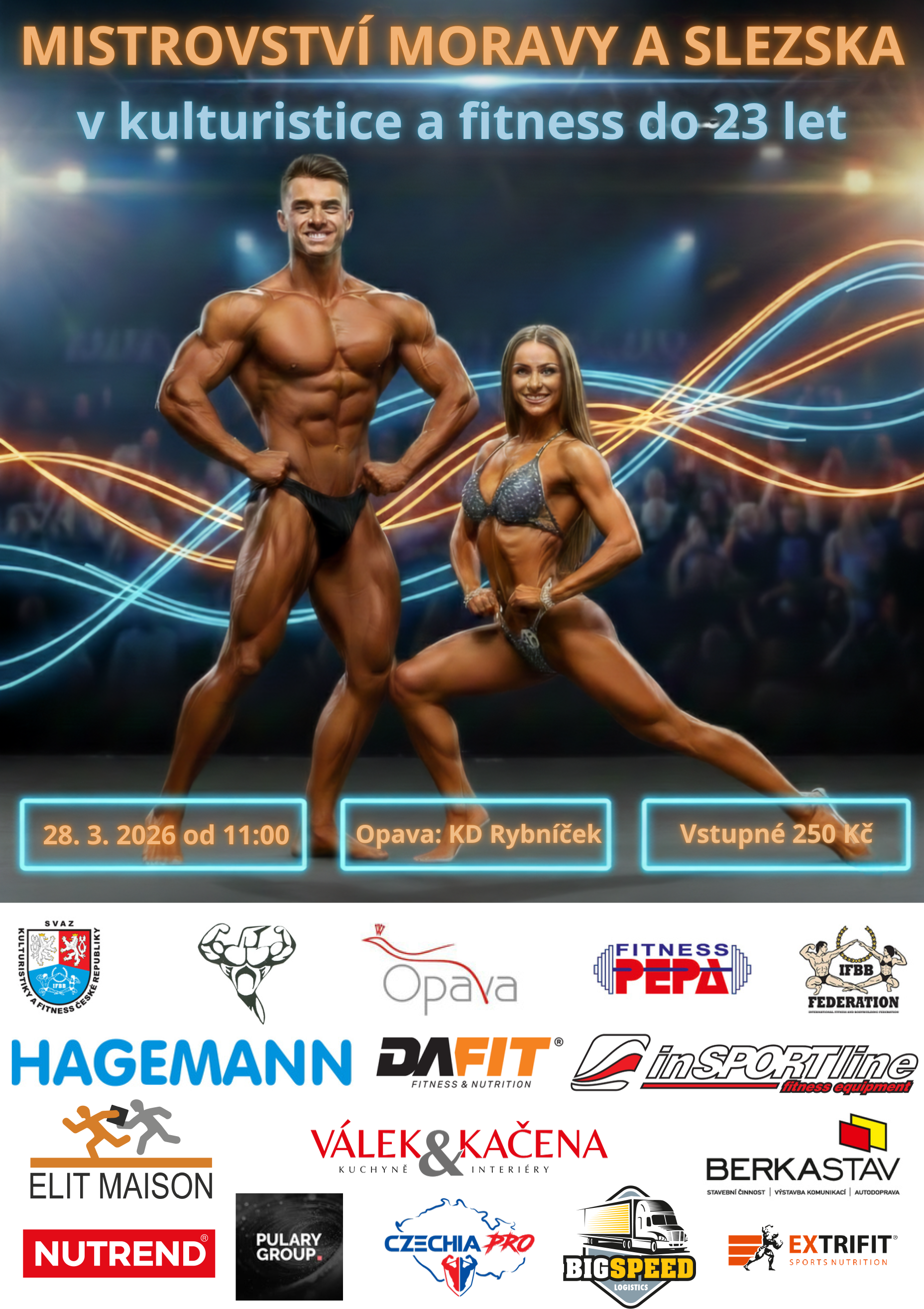 V sobotu 28. března se v Opavě koná mistrovská soutěž - Mistrovství Moravy a Slezska dorostu a juniorů. Závodníci se utkají v kategoriích kulturistiky, klasické kulturistiky, physique, classic physique a bikiny fitness. Kompletní propozice zobrazíte zde.